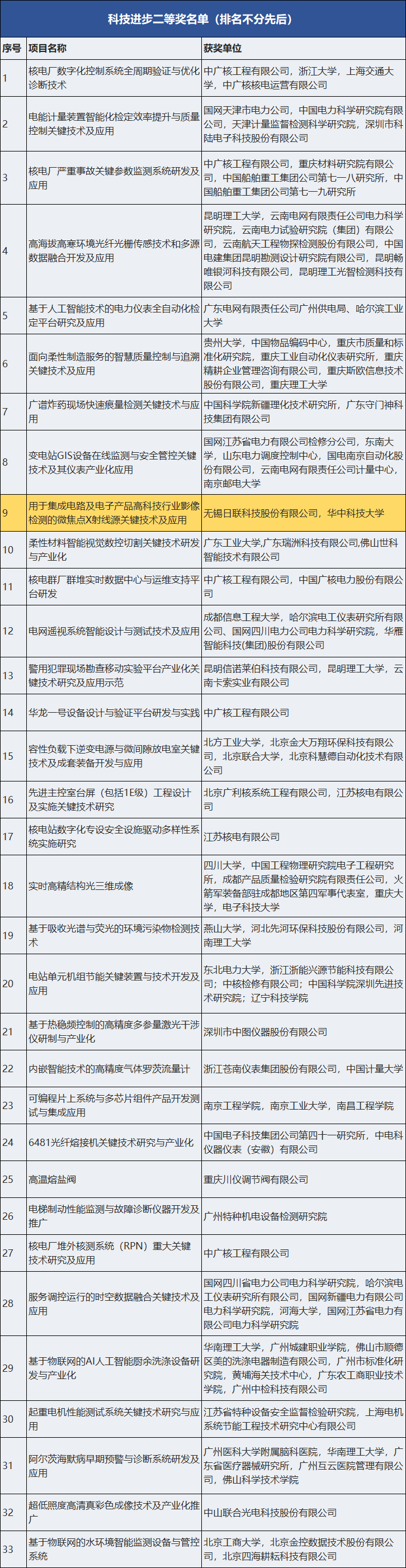 无锡日联科技股份有限公司联合华中科技大学在【用于集成电路及电子产品高科技行业影像检测的微焦点X射线源关键技术及应用】项目获奖。