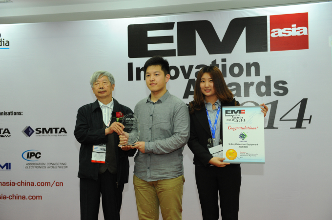 2014.4.24上海NEPCON展传来喜讯,日联科技自主研发的国内首款集160KV高电压、1μm开放式微聚焦射线管及3D CT扫描等多种高端技术于一体的X射线检测仪AX8800获得2014EM ASIA年度“创新奖”,此次获奖已是日联科技连续4年成功蝉联此大奖。此前日联科技的微聚焦X射线检测设备AX7300、AX8200、AX8600凭借其高性能和客户的广泛认可,均获得该奖项的年度大奖。