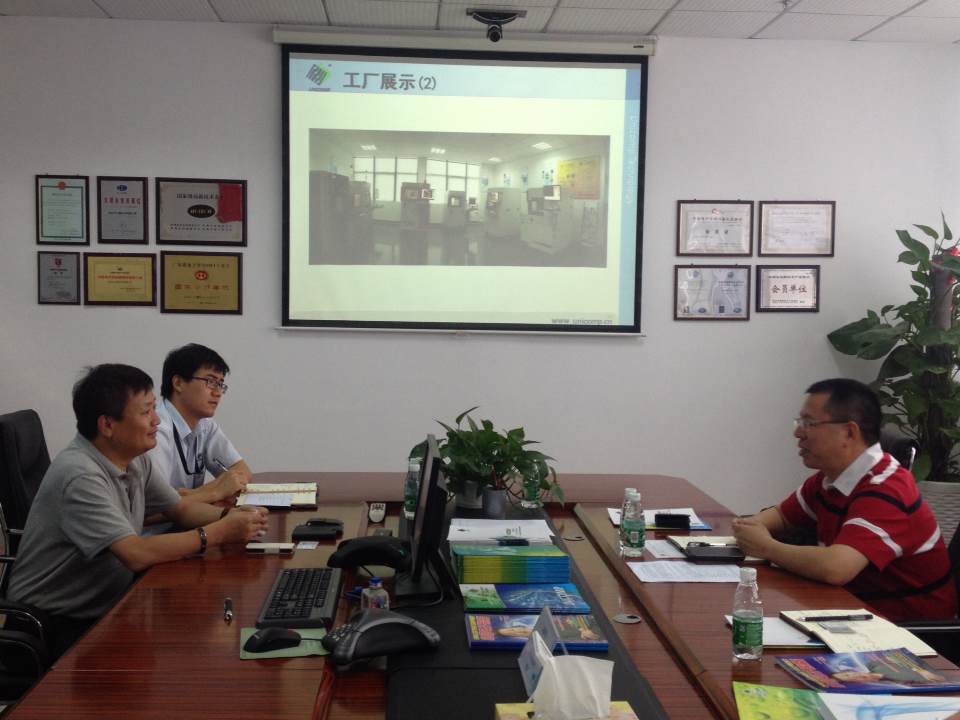 刘总首先向眭会长一行详细介绍了企业的发展历程、组织架构、创新发展、未来规划以及高端X射线系列检测设备在LED、半导体行业的定位和应用。眭会长对公司的发展和定位给予高度的认可,并就深圳市LED产业联合会的发展状况做详细介绍。目前整个广东省LED产业的产业规模、市场需求状况均领跑全国,截止目前深圳地区LED相关企业5000家,整个广东地区达到2万5千家,规模以上企业(2千万销售规模以上)达到4000家。日联科技针对LED行业的微聚焦X射线检测设备,必然会获得广泛的应用和需求,为整个LED产业的发展提供有力的保障。