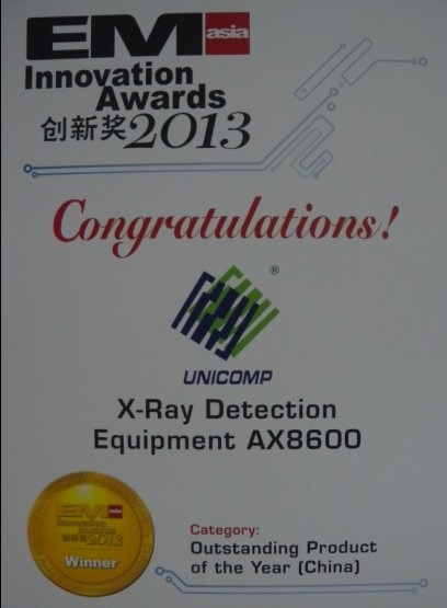 2013 EM Asia 创新奖年度榜单新鲜出炉,国内微聚焦X射线研发、应用的领航企业日联科技,连续3年蝉联荣获创新大奖。EM Asia创新奖设立于2006年,是由腾世传媒举办评奖,该奖项旨在表彰和认可亚洲电子制造业的创新,引导企业实现**标准,推动行业发展。