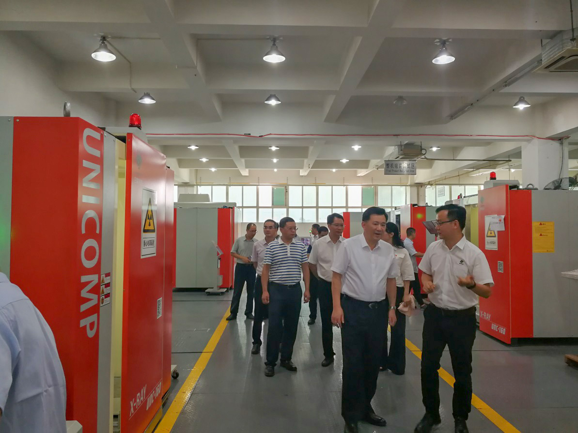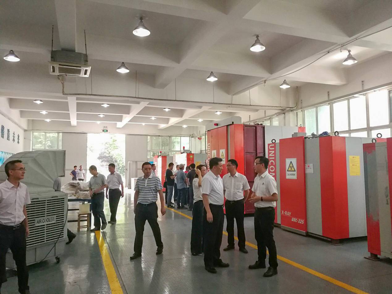 2018年8月7日下午,北碚区区委书记周旭、副区长陈德川等区委成员,在童家溪镇委陪同下来我司参观考察。由重庆日联科技总经理叶俊超先生陪同,带领大家参观了生产现场、实验室、办公区域和展示厅等,并就公司发展现状、未来发展展望及重大项目作了详细报告。